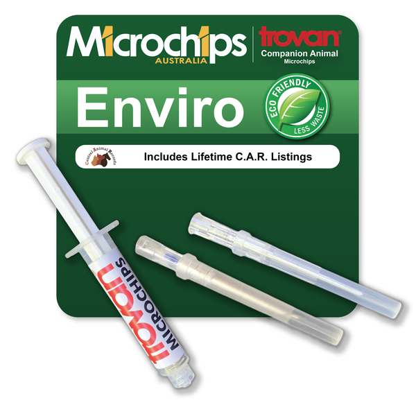 Combines the needle and transponder only and requires a re-usable implanter. Designed to reduce environmental impact by limiting plastic waste — only the needle is disposed of after use.
